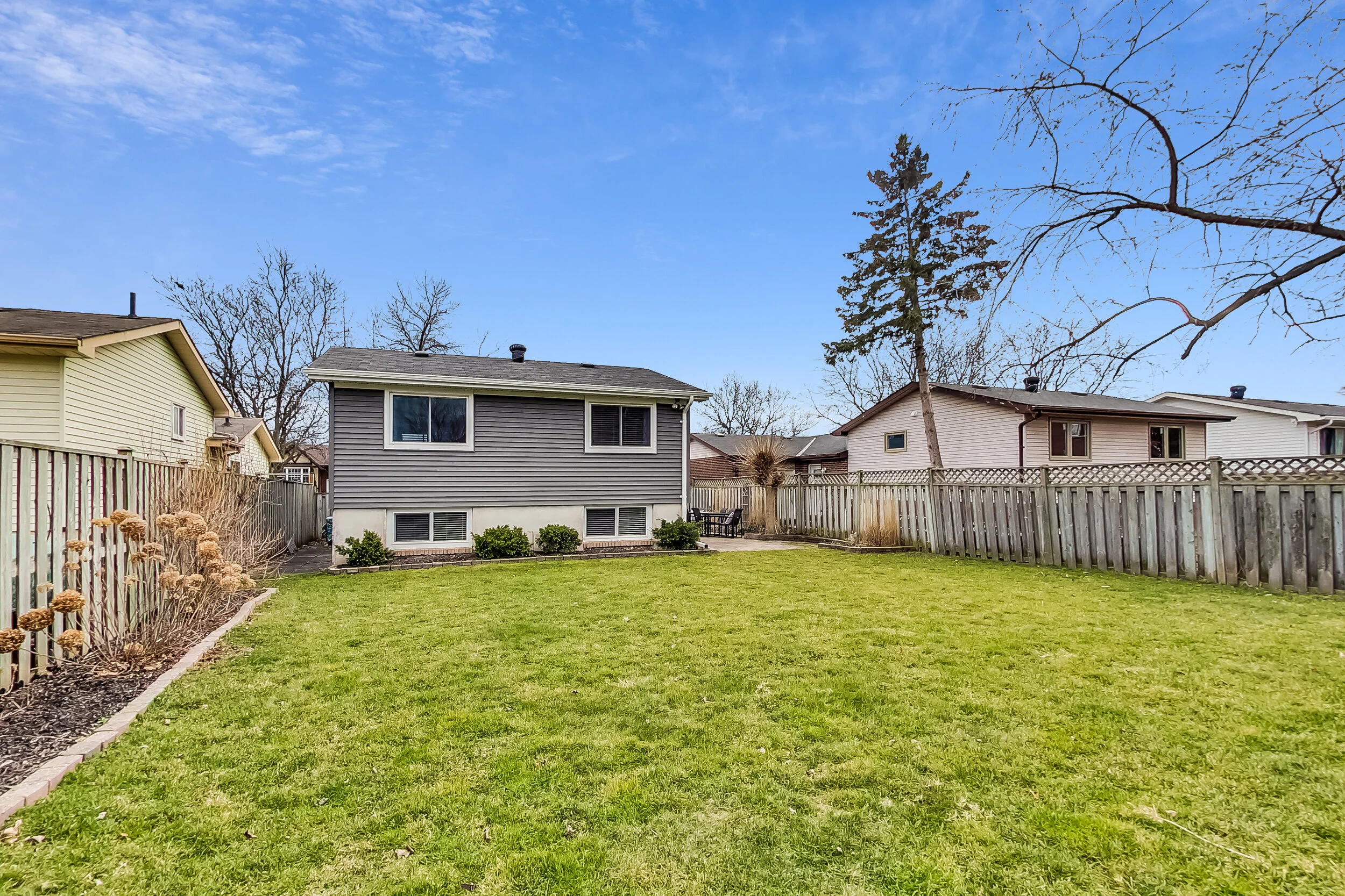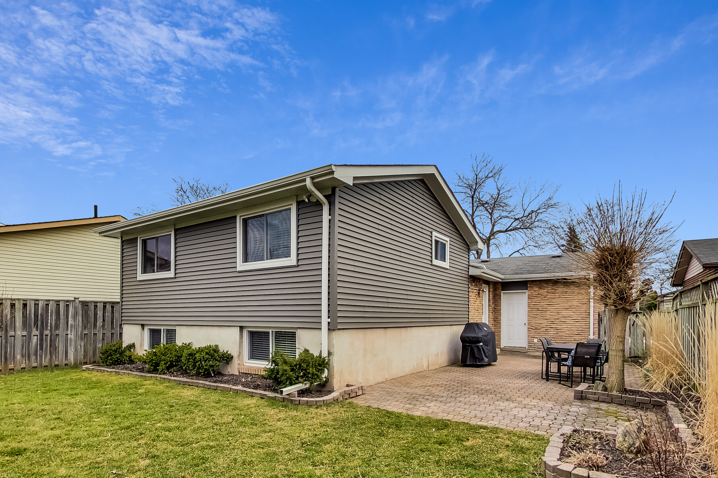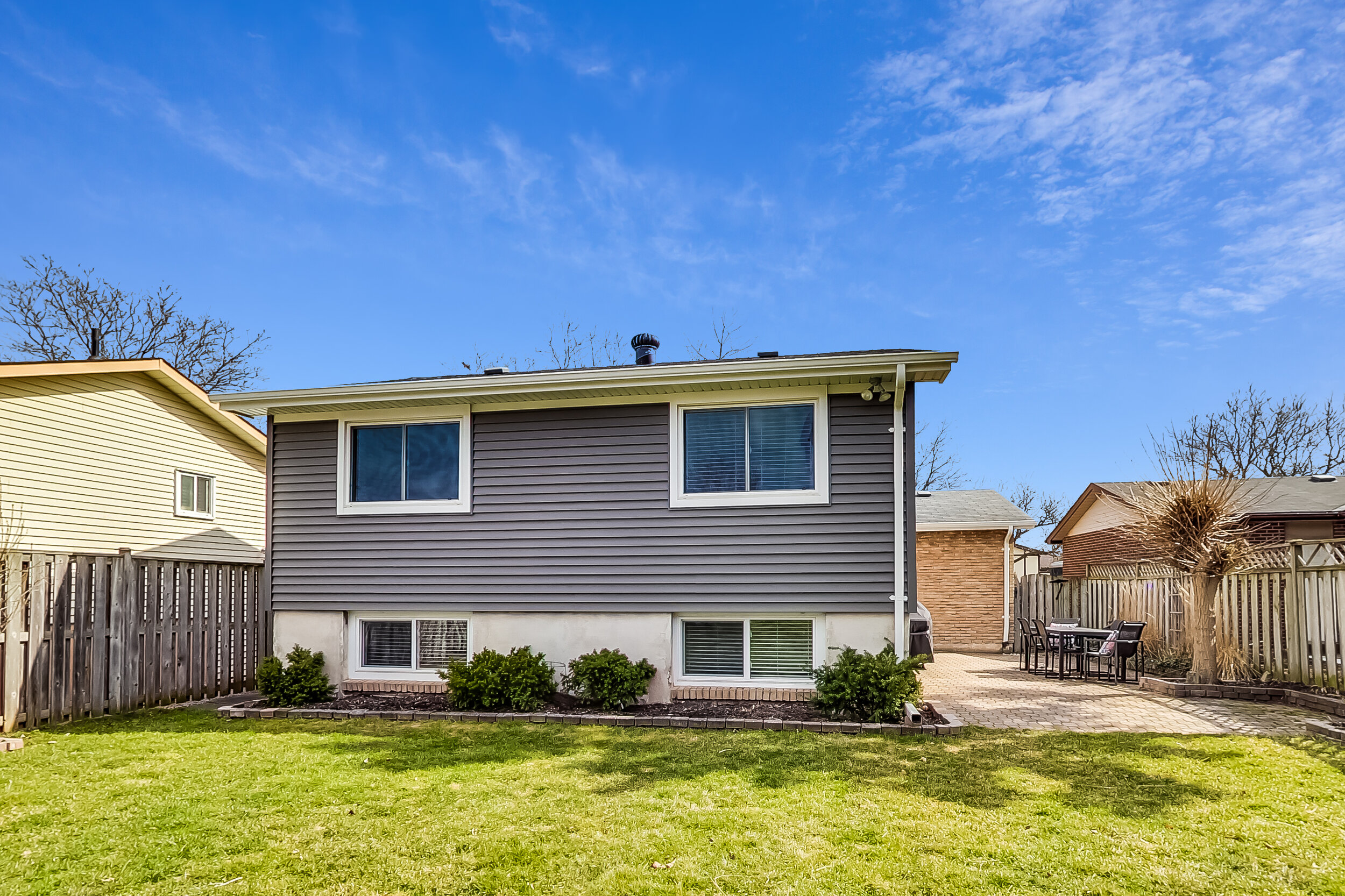 The perfect back-split bungalow is finally back on the market! Sitting on a generous 45ft by 125ft lot, the renovated exterior includes modern vinyl siding, a landscaped stone walkway, newer soffits, fascia, and downspouts.