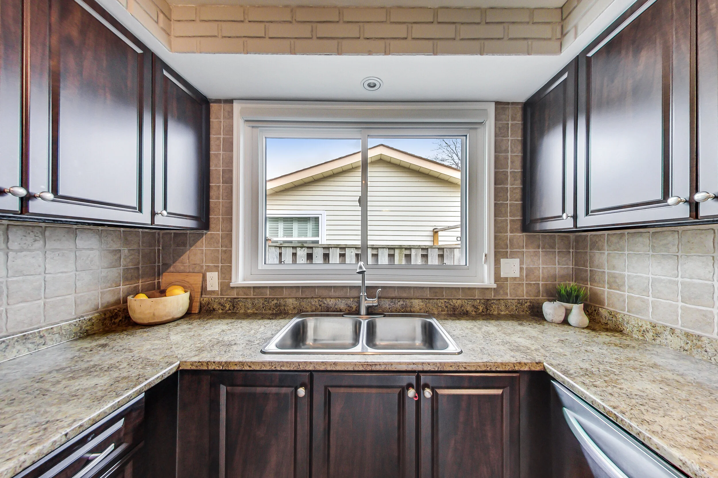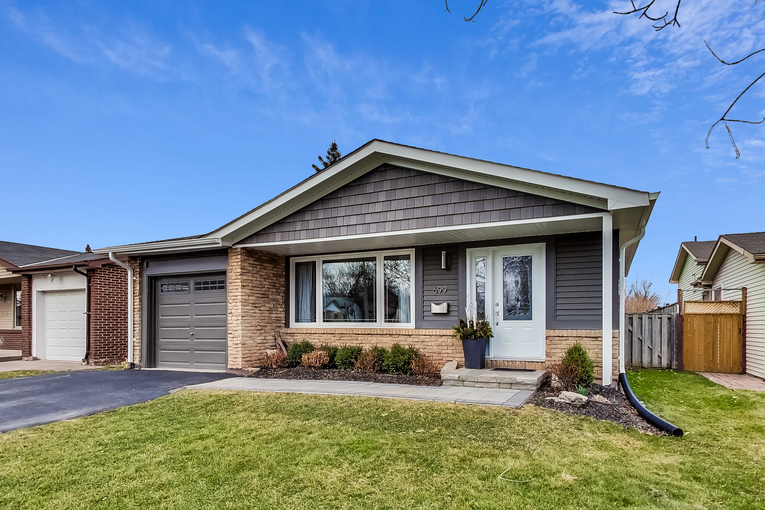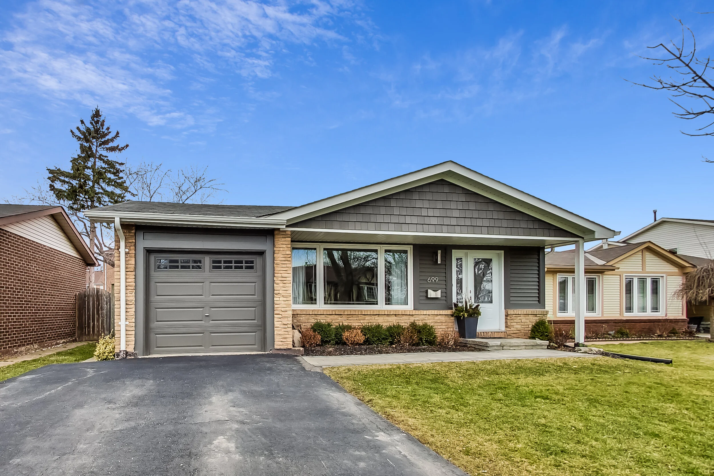 The perfect back-split bungalow is finally back on the market! Sitting on a generous 45ft by 125ft lot, the renovated exterior includes modern vinyl siding, a landscaped stone walkway, newer soffits, fascia, and downspouts.