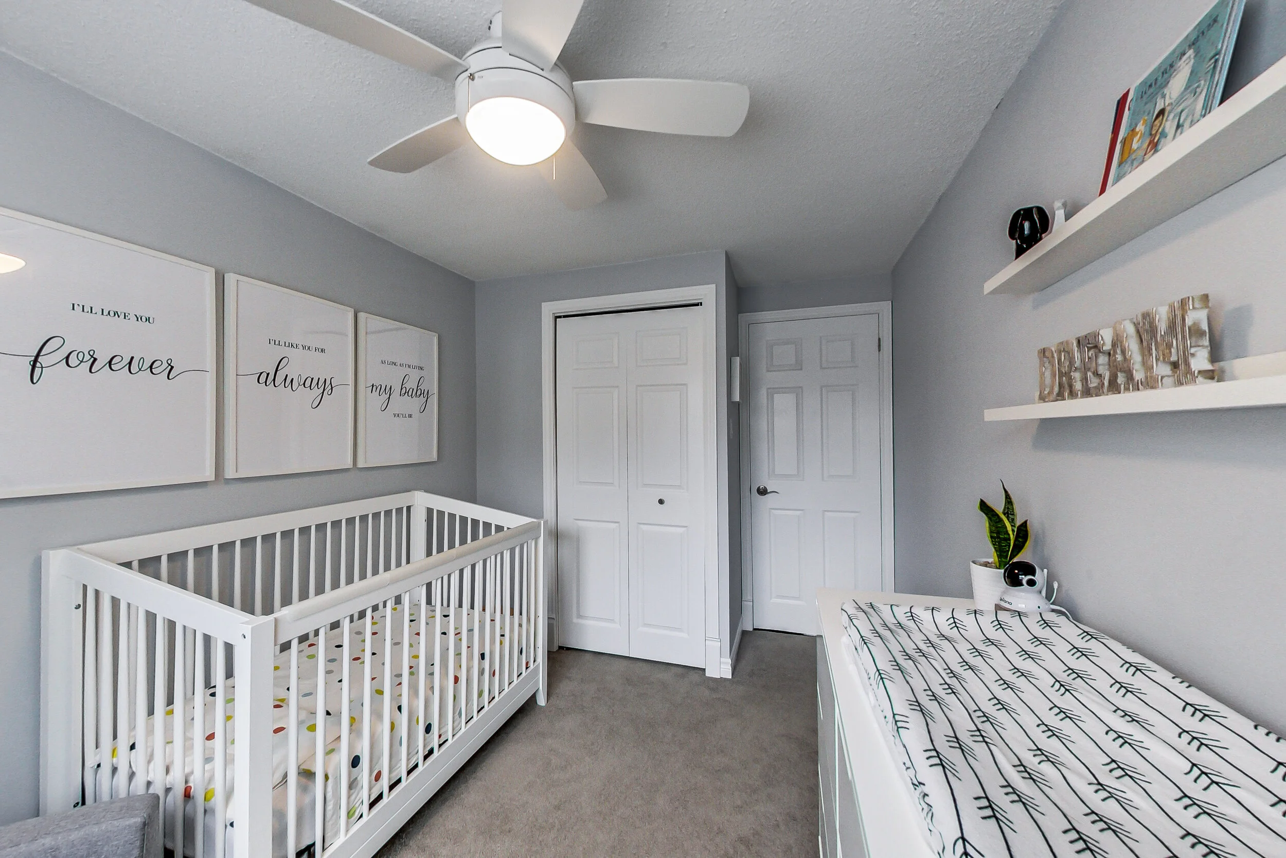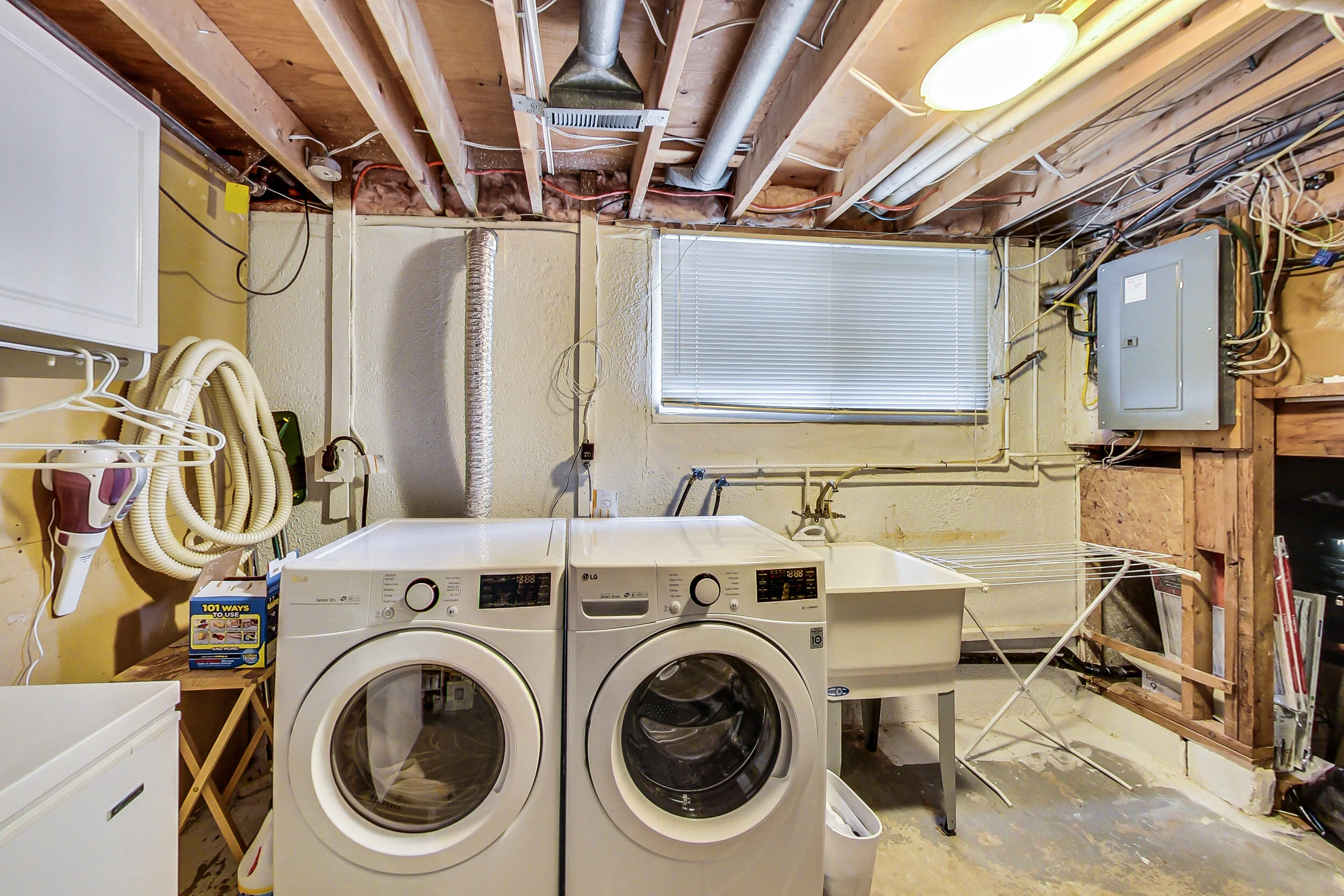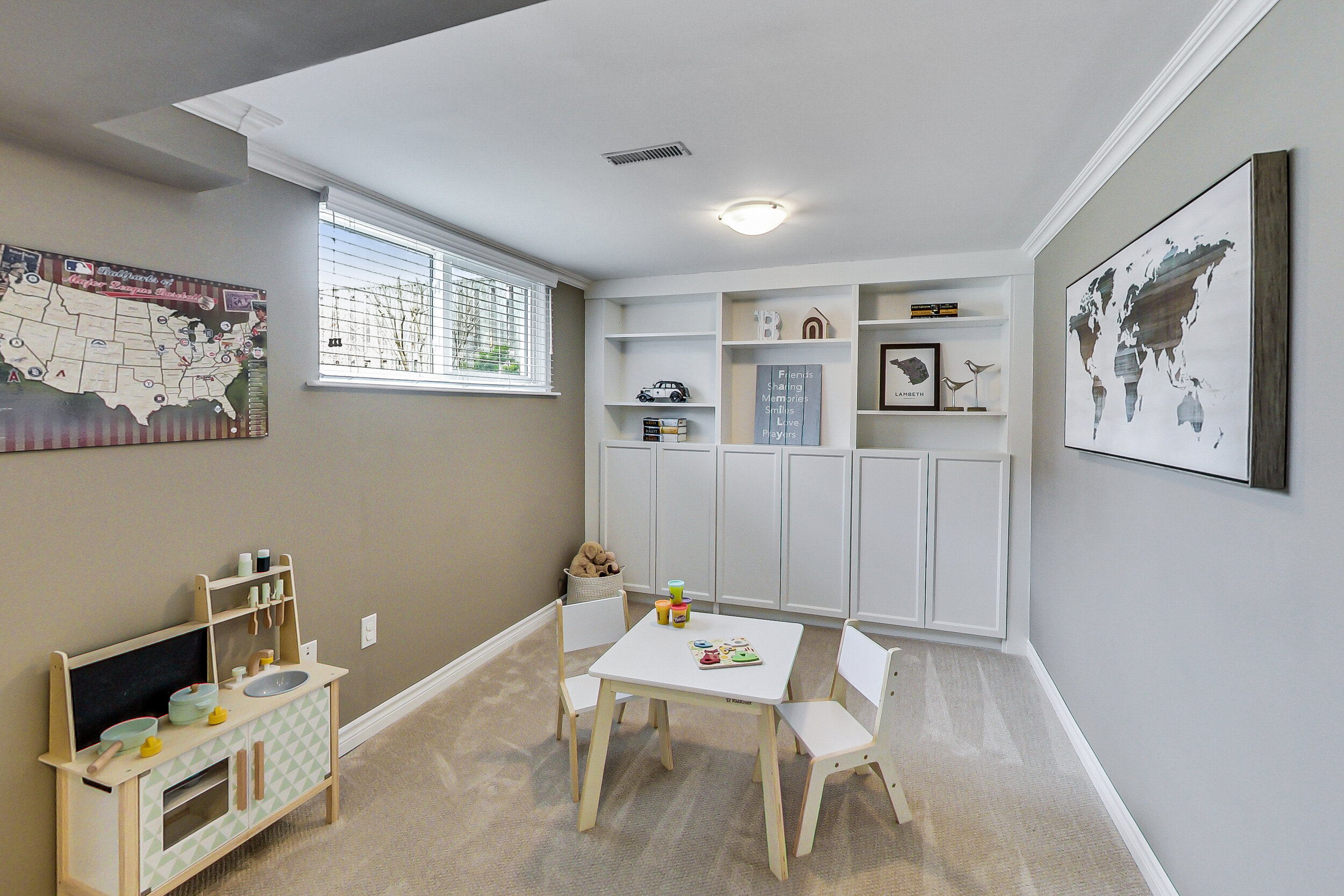 Oak stairs with modern iron wrought spindles separate both levels and lead to a finished lower level, which lends to the perfect extension of your living room. Suited for a growing family with plenty of natural light, a separate office space, pot lights, custom built-in storage, and a laundry room with an ample amount of additional storage.
